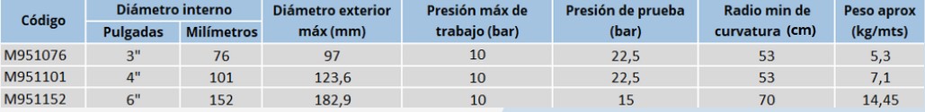 Tubo exterior: de caucho color negro con banda roja, con alta resistencia a la abrasión y a la intemperie.