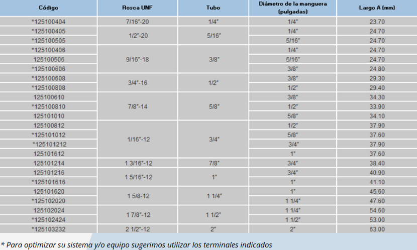 Terminal SAE J516 tipo macho fijo, asiento macho 37º, rosca UNF.